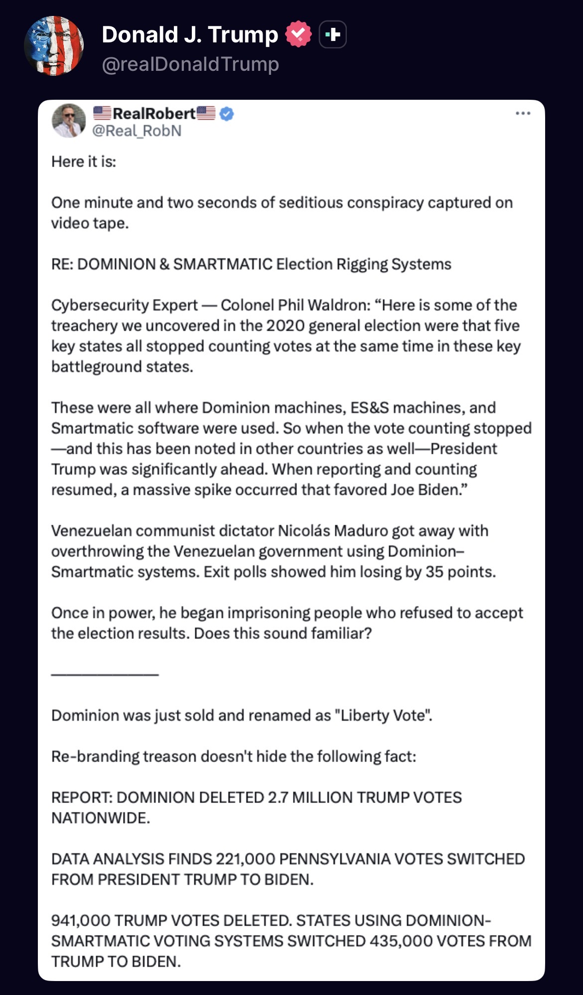 >Liz Harrington (Trump Spox) https://twitter.com/realLizUSA