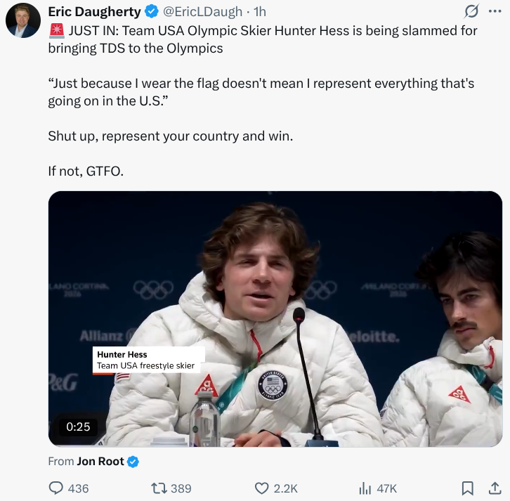 >>527968887Based actually.Why should he worship Trump and suck Trump's dick just because he's good at skiing?