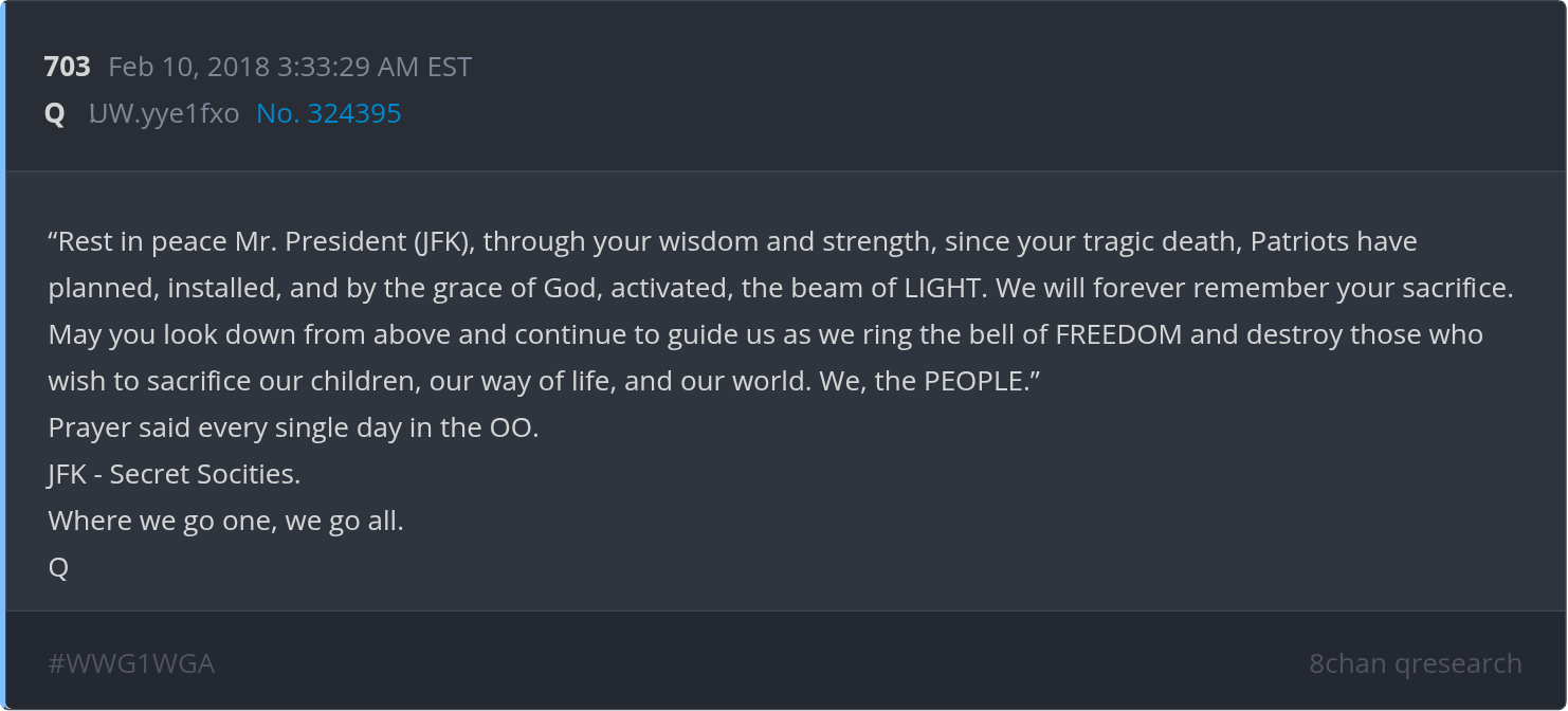 >>527985996Q was just worried they'd use scripts to attack any mention of "Qanon", so they tried to shift things to give the info better means to reach the populace (again, measures of Signals and Noise).Do you know how many namefags have come to chans and decided what their own nickname would be? Do you even know how anons for so long have organized or issues naming conventions?This rhetoric is simple and beneath the effectiveness of the parties involved. We can easily overcome signal to noise attacks. We never needed to avoid calling it Qanon. I'm not sure why Q didn't want to be one of us in the first place. "There is Q and there are anons. There is no Qanon" doesn't make sense when the same party had for so long tried to instill a mantra of "Where We Go One, We Go All". It was fine to congeal all of us behind a psuedo-leader, but that undermines the mantra. Qanon is therefore just another random anon that had a leadership role for a while (until they willingly abandoned it).Qanon doesn't get to decide their name. We already named many websites after them. We have loads of new bread images that said Qanon, bread titles featuring the name, memes we made, videos which referenced Qanon and a hell of a lot more like different blogs, silver coins some guy made and sold on Silver.com and a shit ton more.Can you fucking casuals just figure it out or get on board already? FBIanon didn't get to choose his name either and the guy didn't complain about it.
