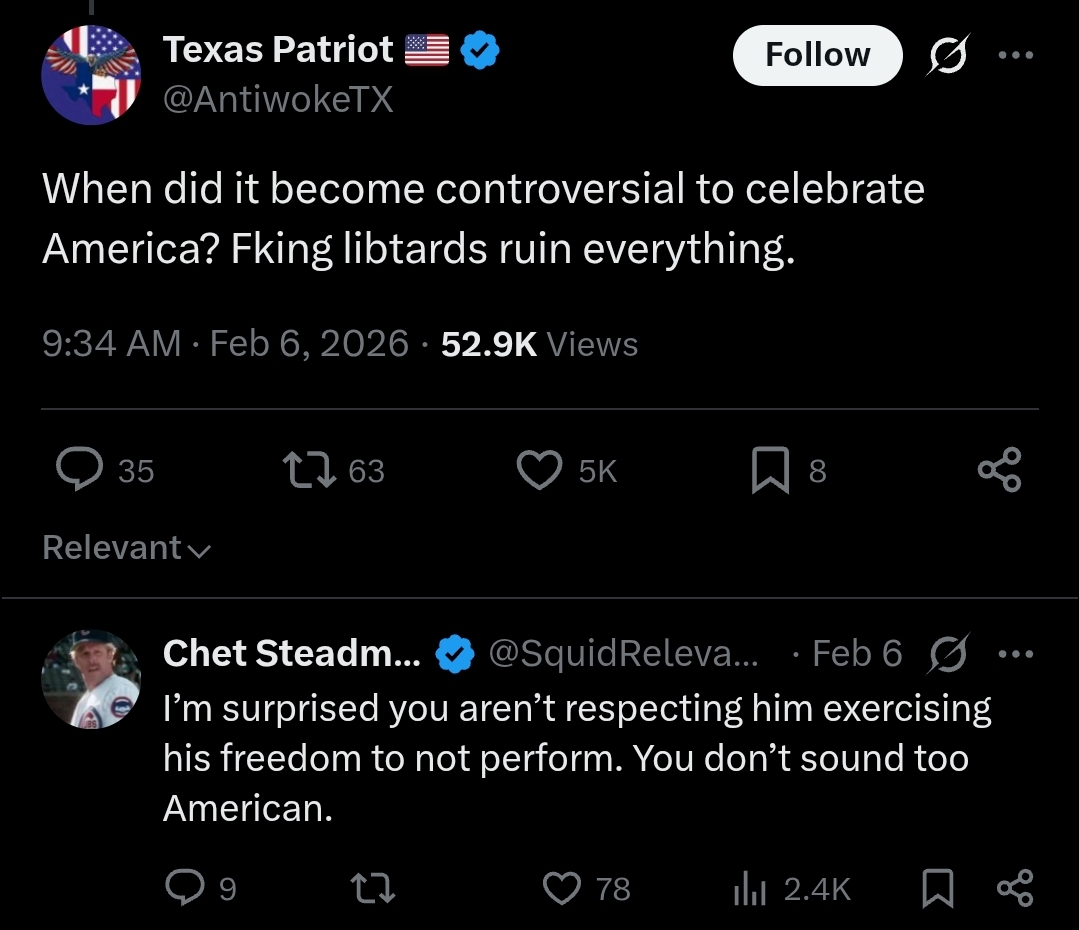>>527976939> The Jews divided us with their halftime show I don't like. It was them, not me.Yes, it is the jews. Not a single anon wants Bad Bunny and his anti-White, anti-American, pro jewish replacement shit at our Super Bowl. Exactly. Why are you jews dividing us in the first place with this type of performative tranny bullshit? There would be no need for a separate halftime show if we weren’t forced to have anti-White dress wearing performers at our game in the first place.
