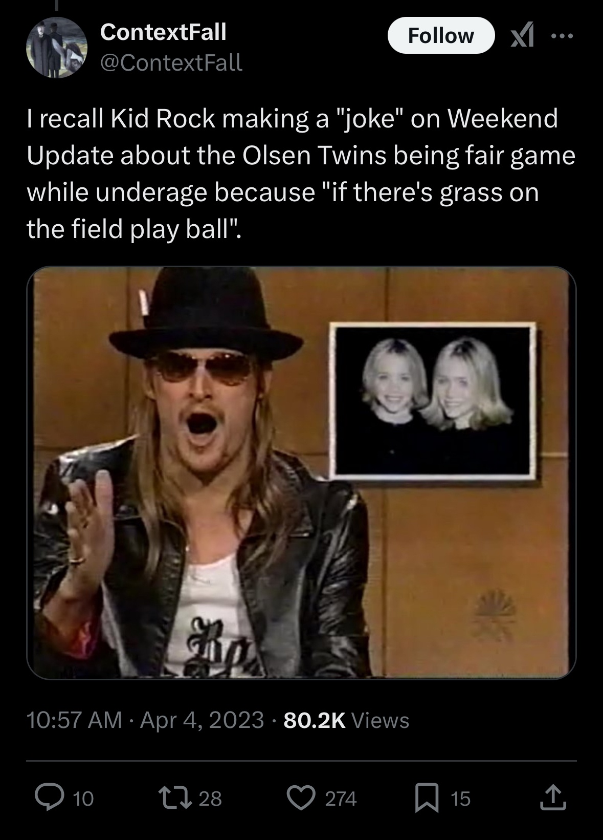Kid rock is like 70 years old who the fuck would tune into that intentionally? lol he made like 3 songs and were holding onto him in MAGA like he’s some relevant artist.