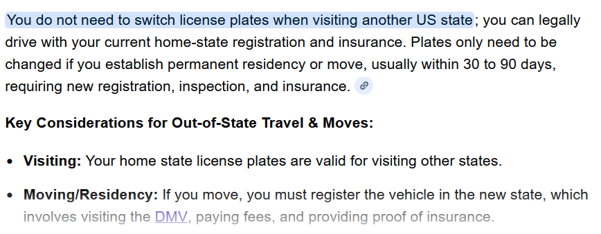 >>527974526no, if you drive to another state you have to switch to that states plate at the border.its crazy how much you foreigners don't know about the usa