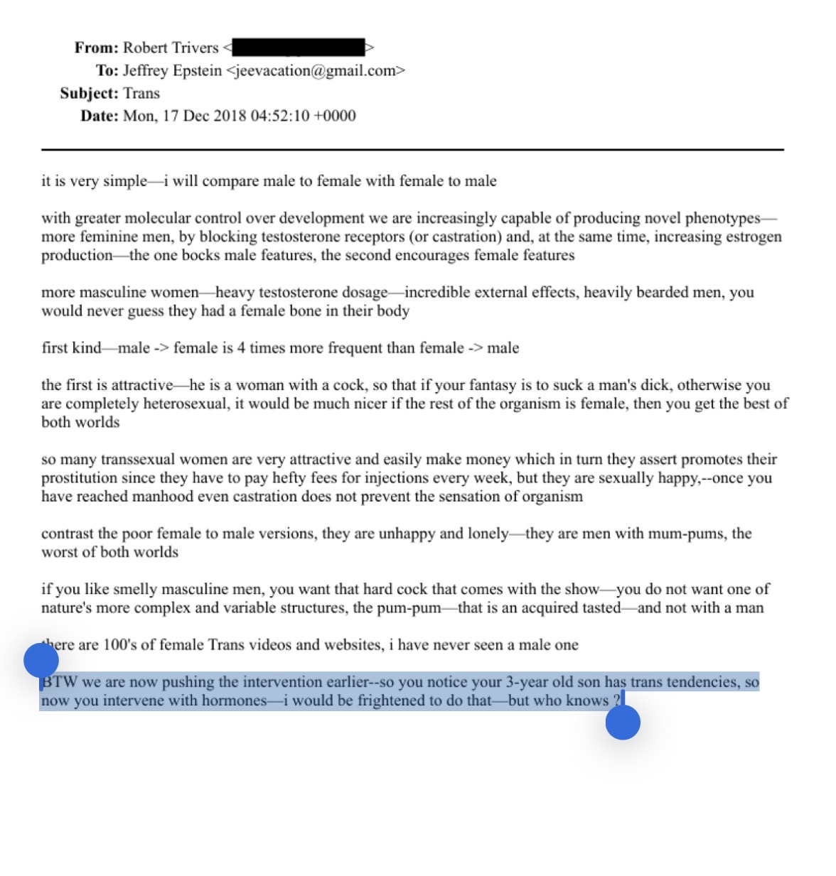 >Transsexual woman easily make money which promotes their prostitution>We are now pushing the intervention earlier>You notice your 3 year old child has trans tendencies so you intervene with hormones