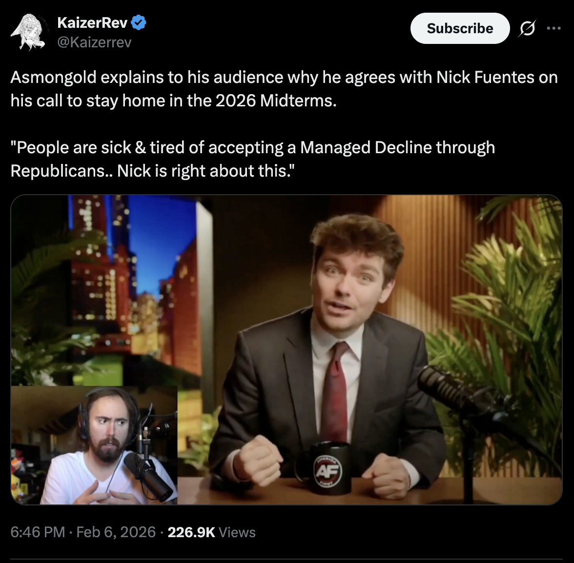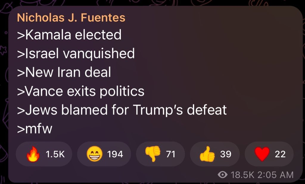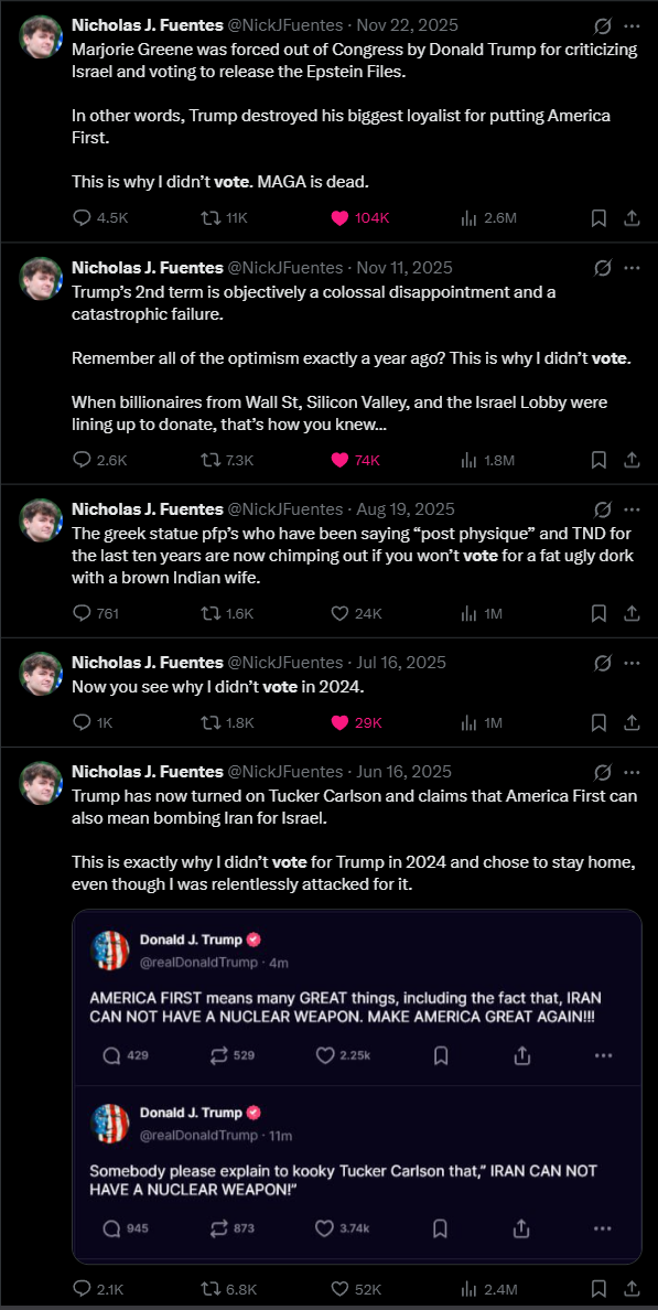 I see where Nick is coming from but the alternative is worse for Whites. We're going to reach a point where the damage is too much to come back from. I think the real hope is the state and local elections actually. We're not getting a Groyper president any time soon but Groyper mayors, maybe governor, that's on the menu.