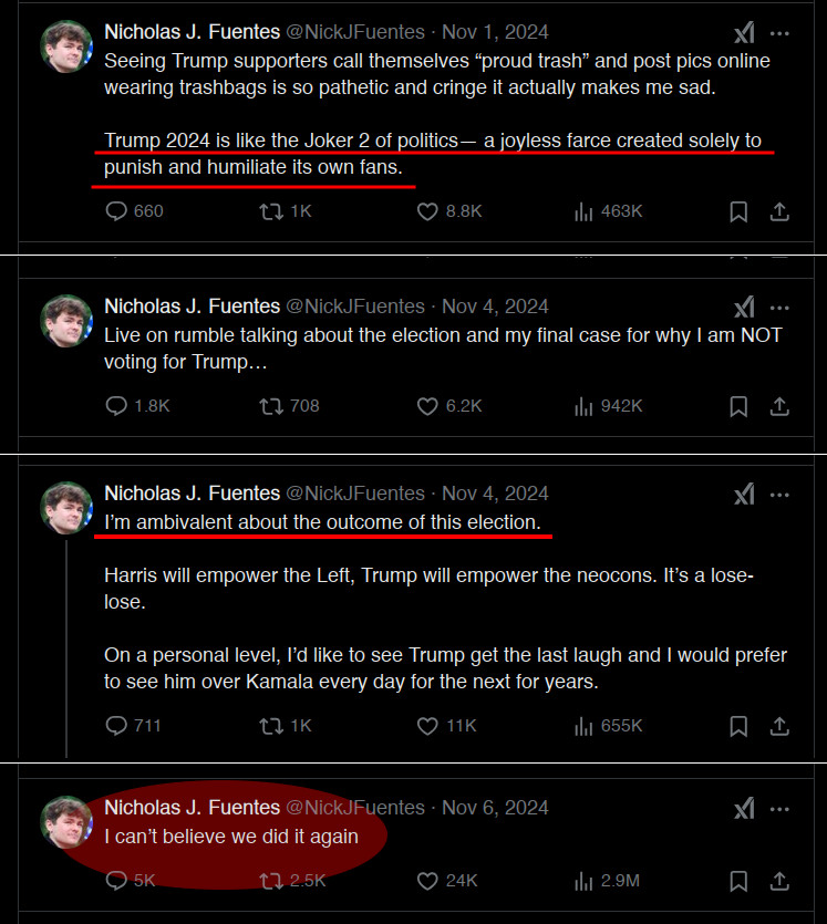 >>527979400Nick never said to vote for Kamala, and in 2020 he told people to vote for Trump.
