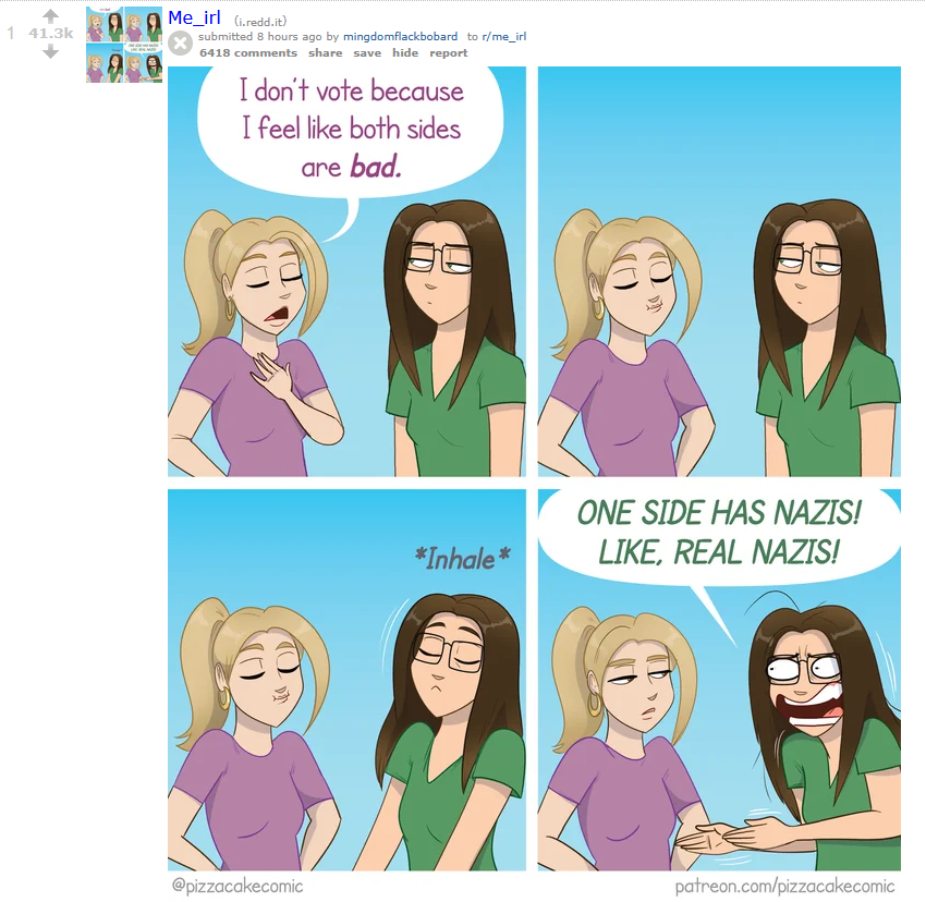 notice the conspicuous inclusion of the reddit "upvote" score in the top left corner.the post here on pol could simply have been of the comic, but no the main Point of this is to show that it has been seen by a lot of people so that it has a "viral" feel to it, inviting confident responses to what would be otherwise a LITERAL WHO comic strip. in before 600 replies