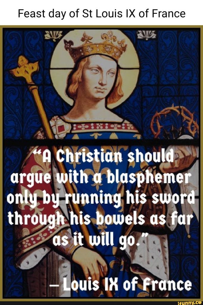 >>527990650>Louis led the ill-fated Seventh and Eighth Crusades against the Muslim dynasties that controlled North Africa, Egypt, and the Holy Land. He was captured and ransomed during the Seventh Crusade, and later succumbed to dysentery during the Eighth Crusade. "a christian shou-AACK!!!" -- Louis XI, iFunny.com