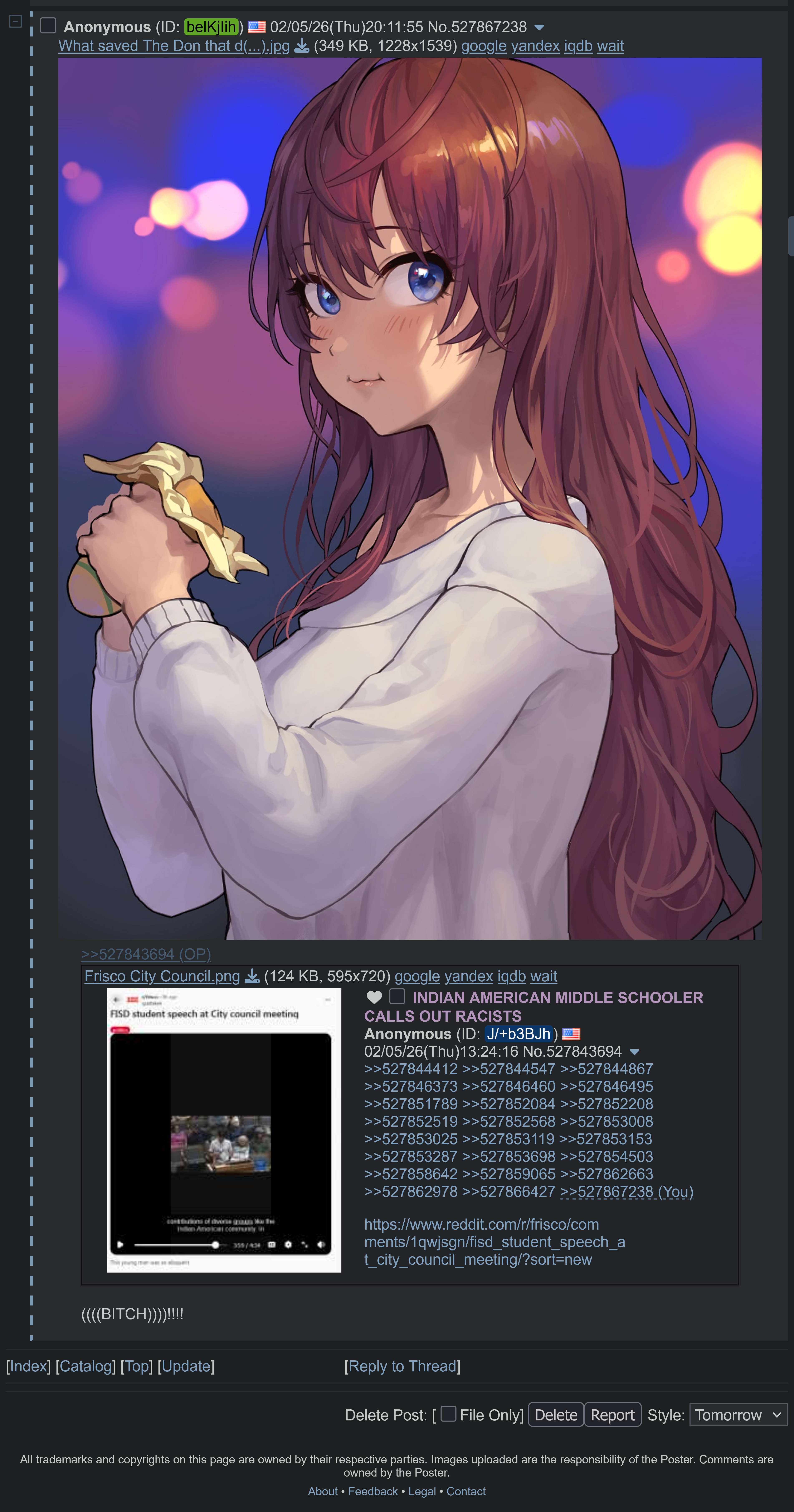 >>527980352GIRLS SHOULD NEVER COVER THEIR HAIR THAT IS THE REASON WHY I DON’T LIKE YOU!