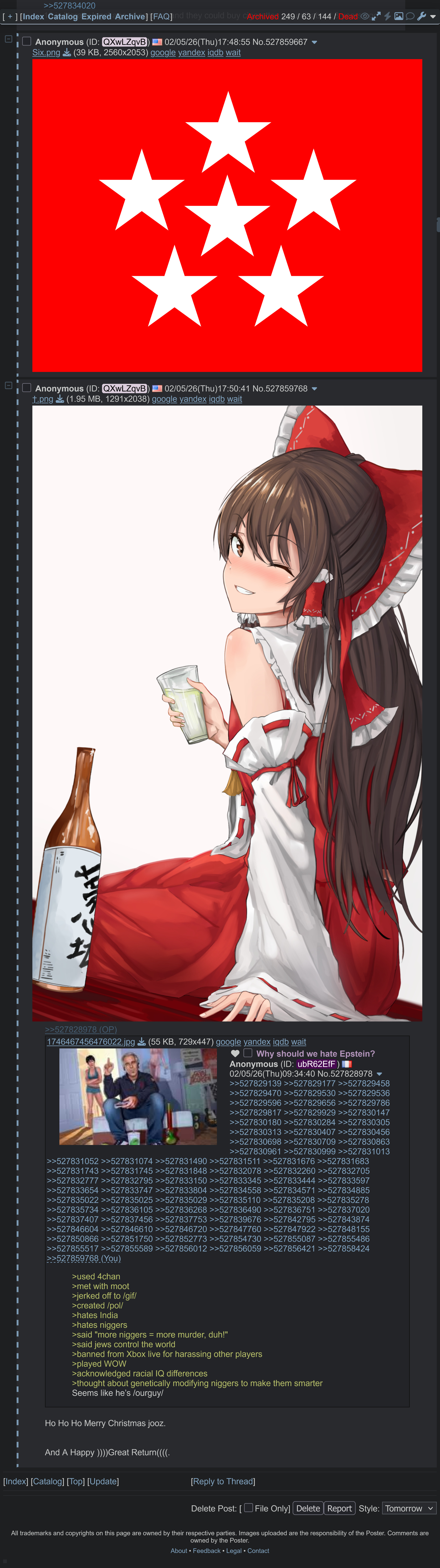 >>527980352you're so anally gaped about yourself being brown and worshiping an actual pedophile as your messiah that you went out of your way to come to /pol/ just to make a seethe thread about it. think about that.