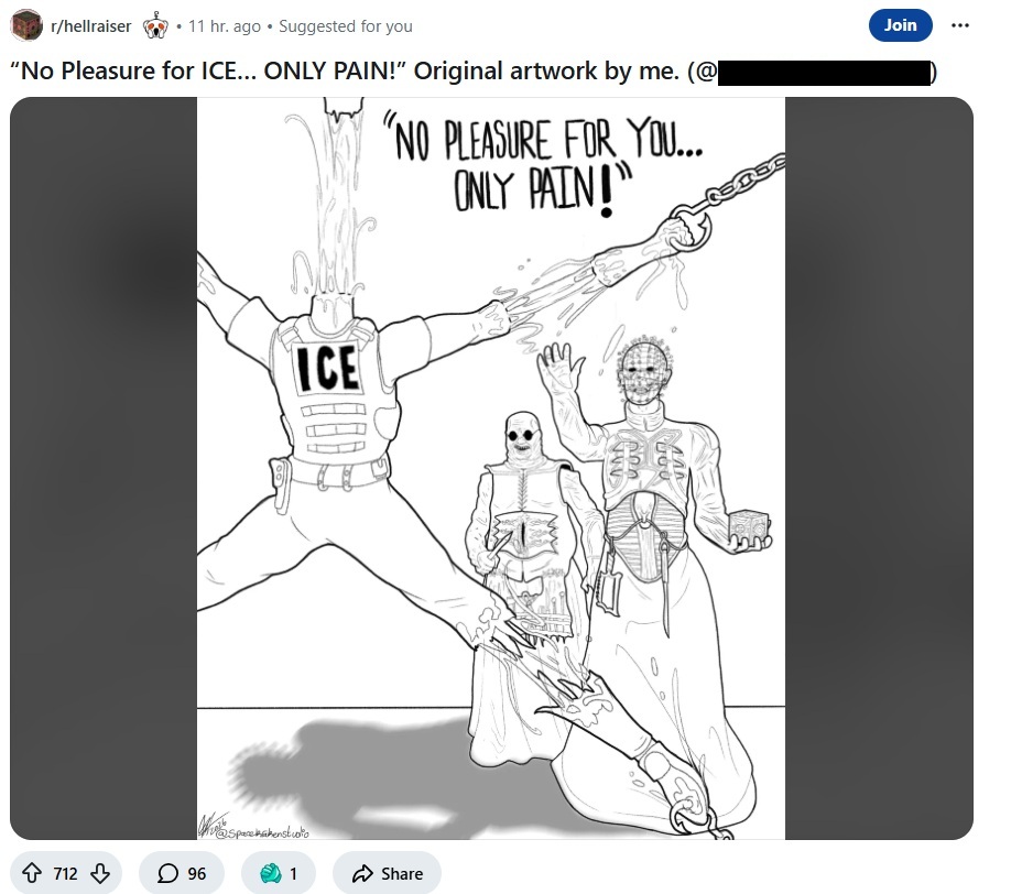 When I was a teenager, I was edgy. Anyone that I got into a conflict with, I drew a monster or something tearing them up. The monster would agree with me because I made it to do so. I outgrew that, and am embarrassed to recollect it.Do you guys think the reason the anti-ICE people on reddit are posting shit like picrel, is because they never outgrew their emotionally-driven teenage phases?