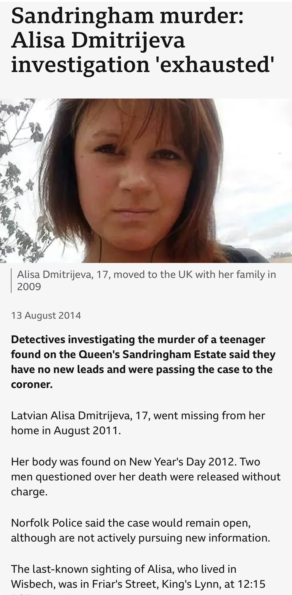 >This barely-mentioned Latvian girl was found murdered on the Sandringham estate, the day after a royal bird-shooting weekend. Media was told she’d been addicted to drugs but the toxicology report said Alisa had taken no drugs. 10 minute doc. Fascinating>I think it’s time we revisited the story of Jacintha Saldanha, a nurse, wife and mother of two children, who fell for an Australian prank call and put two DJ’s through to Kate Middleton's nurse. Although the hospital didn’t reprimand Jacintha, she was found 5 days layer in her nurses quarters hanging. Apparent suicide. This story makes no sense. A wife and mother killing herself because she let a prank call get through to the royal nurse?