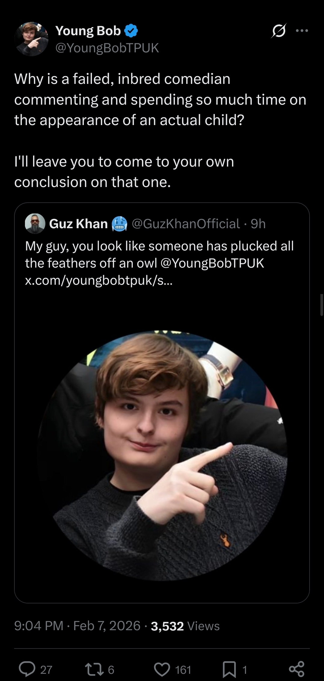 >>527990728he's 17 but he does actually look like a plucked owl, that's some hq banter from the pakistani