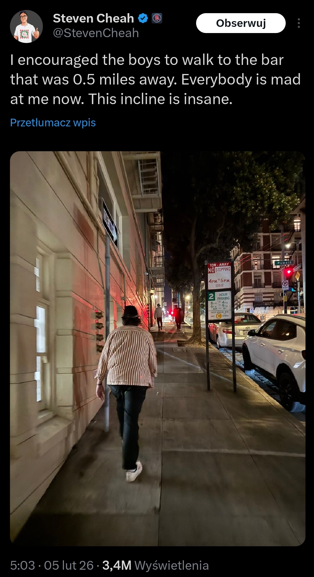 >>527984941I live in a suburb near a little uptown area. Every day boomers on Facebook complain about lack of parking near the restaurants and city events. There’s a big parking lot that is at most a 5 minute walk from any of the businesses. They can’t handle crossing a street and walking less than a block. It’s incredible.