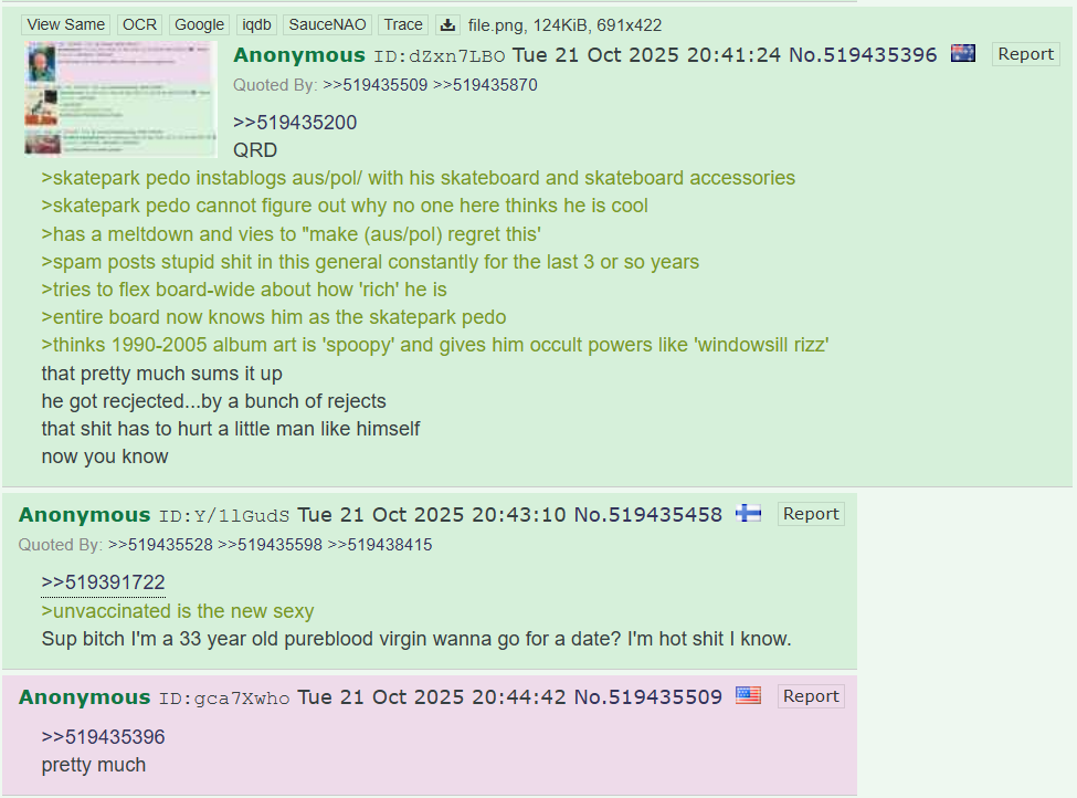 i am a real person, reminder skate park pedo and other auspol characters like ian are just asio psyops to trigger lonely schizos on auspol to get caught up in meaningless nonsense/derail us