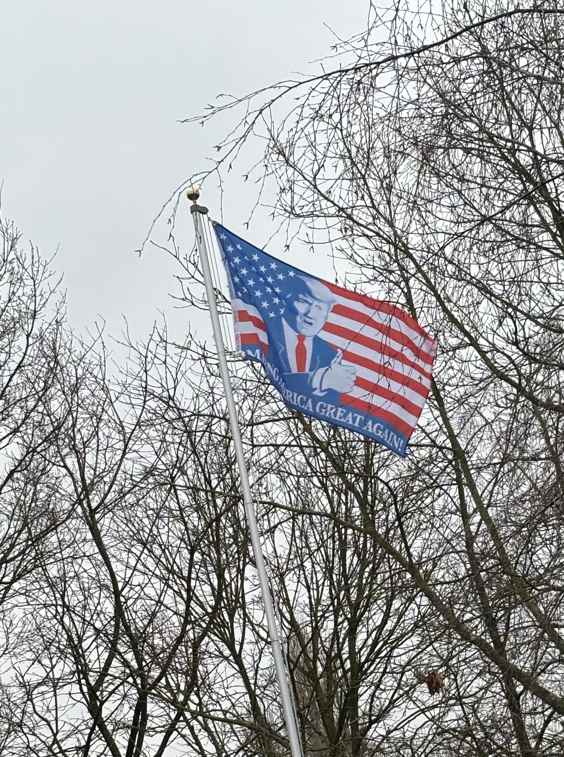 Good. Pic: one of the flags we fly above the gardens at my sister’s country house down the road.
