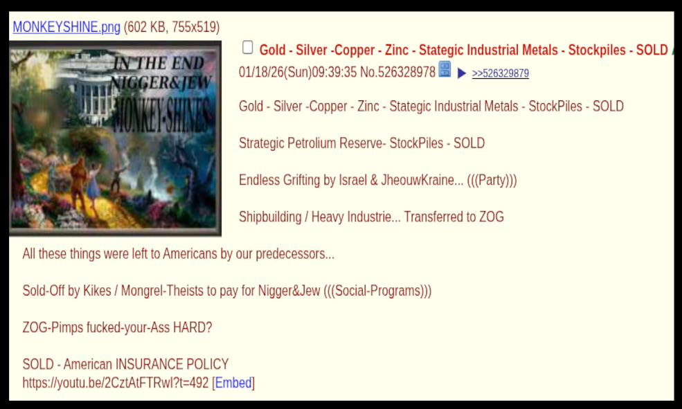 >>527999894Do unto others...Besides, pol's solution to everything is to kill niggers, spics, jeets, boomers, etc.... see if you like it if it works so great.