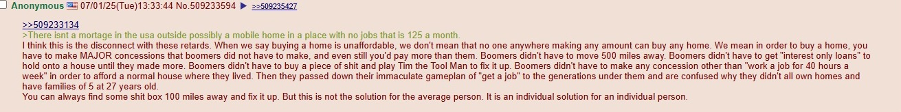 >>527994959You could also build your own home.There was even a guy on here who was doing it.But he was kinda retarded.He forgot to make the floor and was using used motor oil to treat his walls.