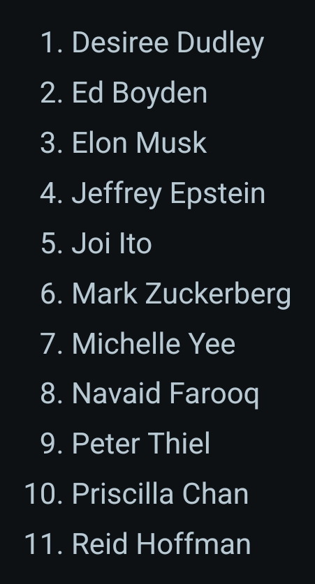 >>527995944All his associates were Democrats save a few like TrumpReid Hoffman, Larry Summers, Noam Chomsky, etc