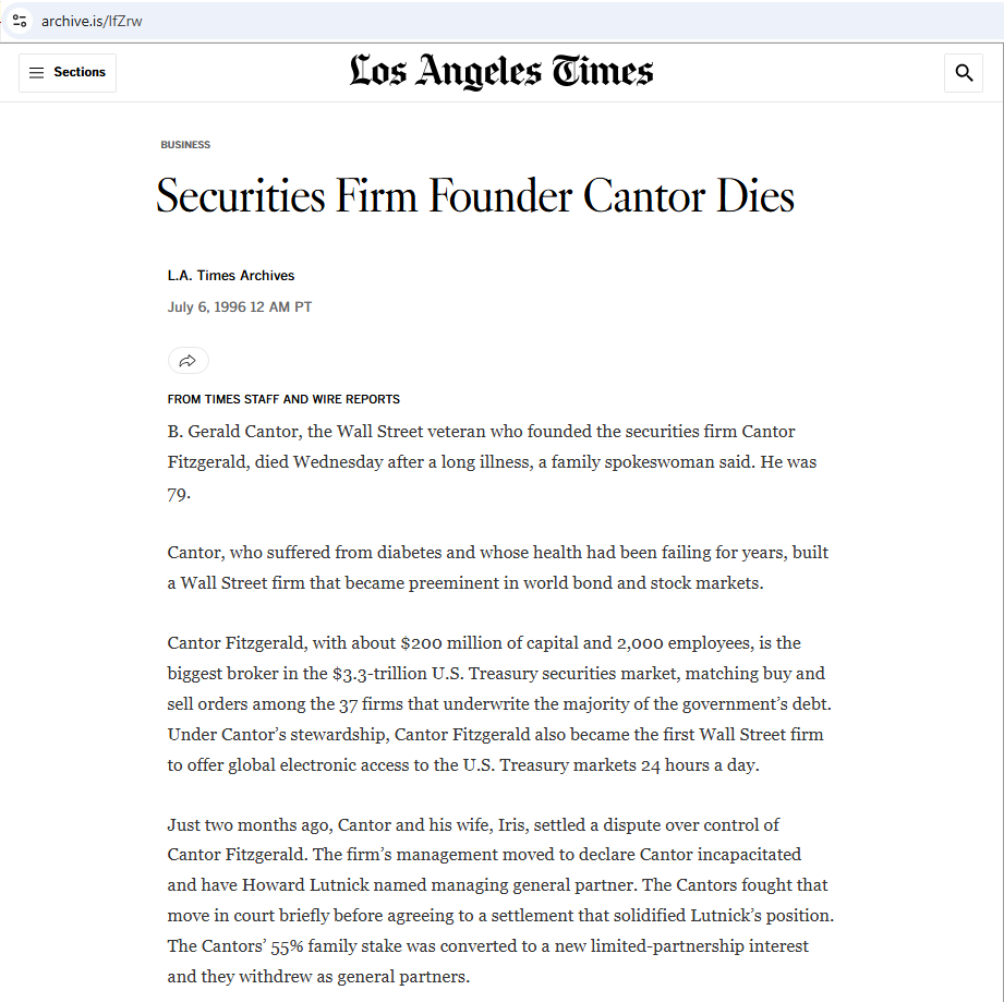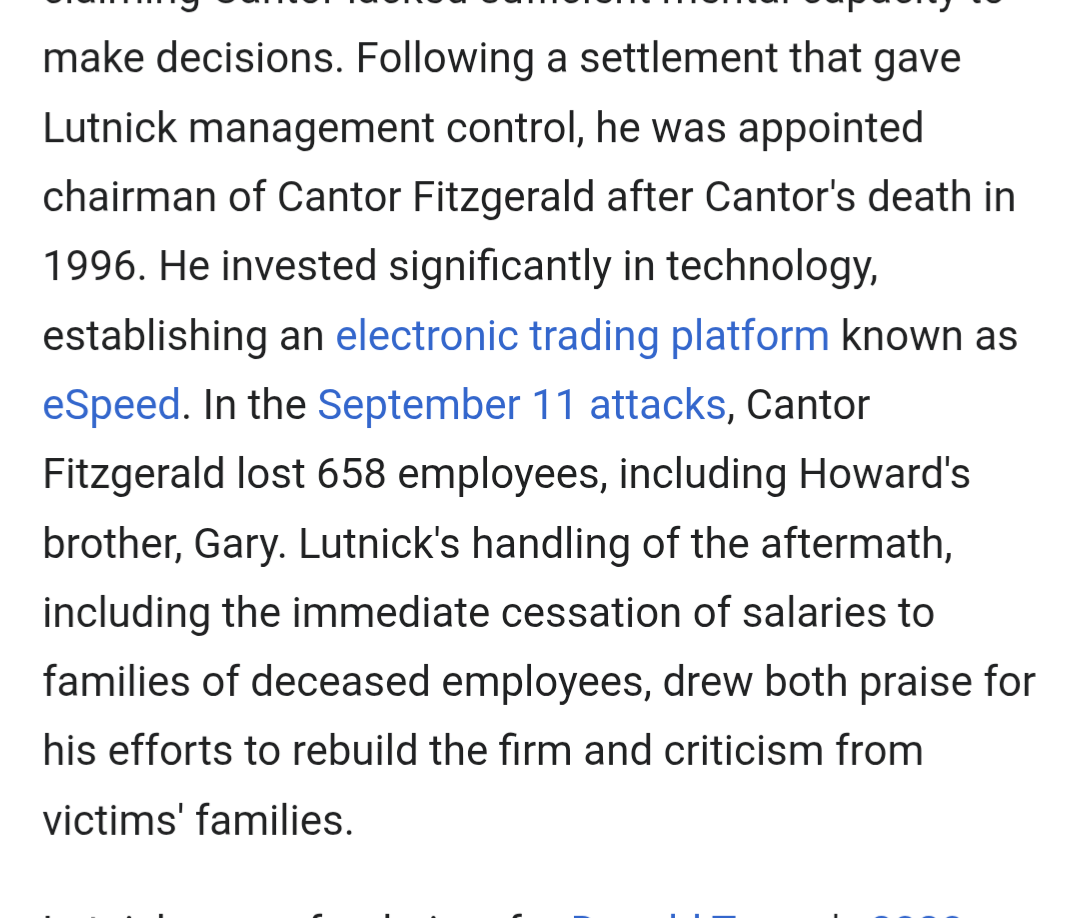 He also had 650 employees die on 9/11 but he DID NOT go to work that day. https://en.wikipedia.org/wiki/Howard_Lutnick