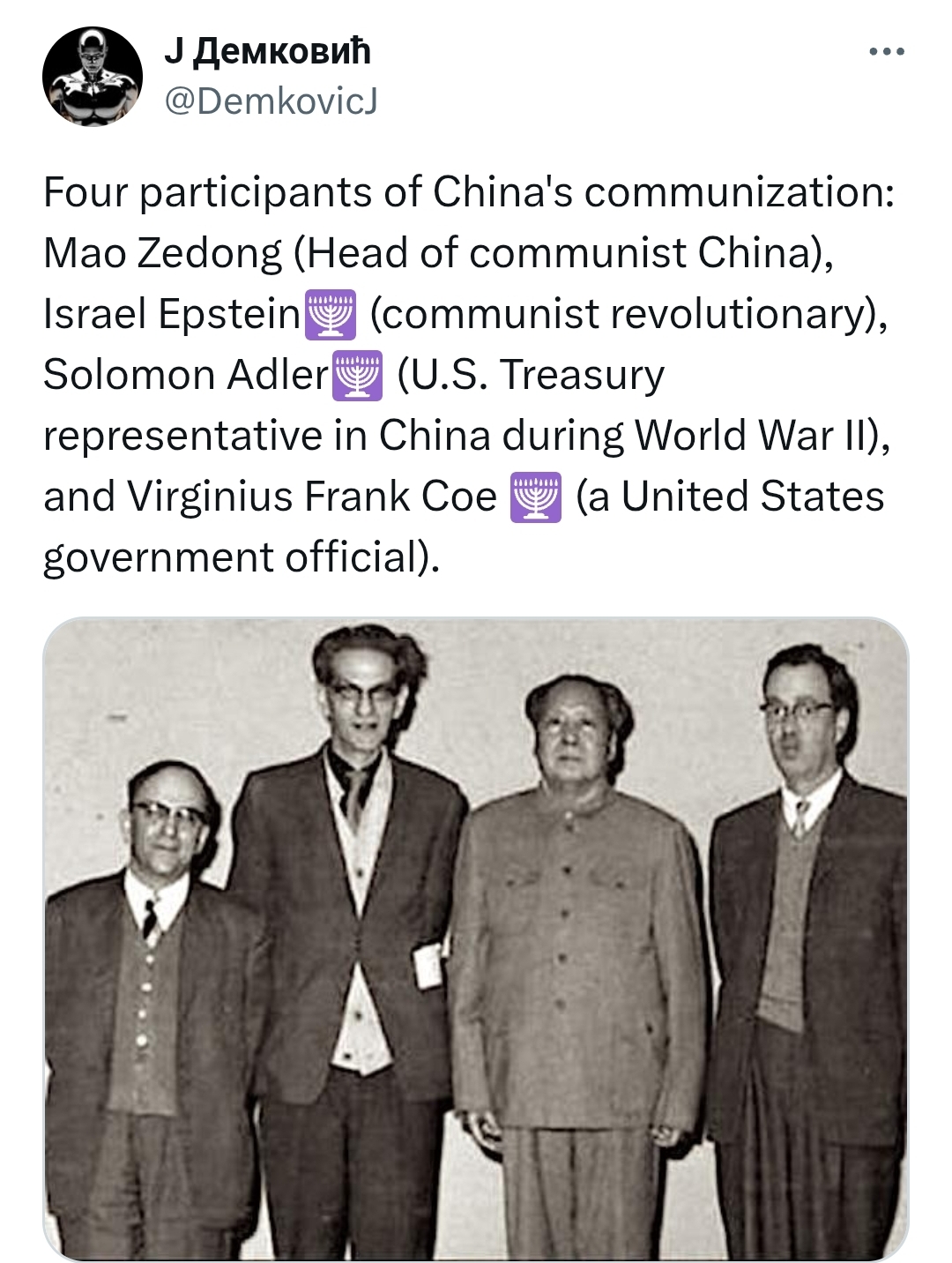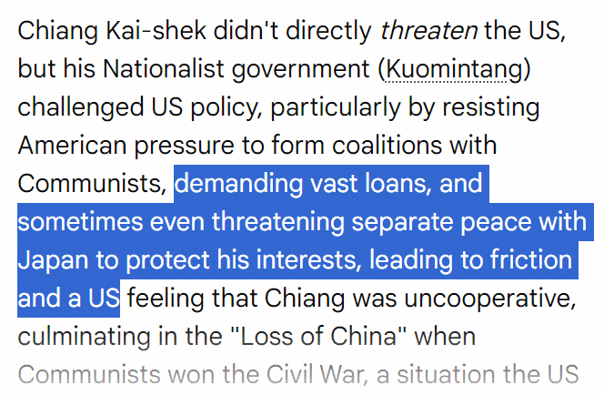 >>528013882>They saved you from becoming japanese in 1940sDoubt it.Mao was always going to kick out the Japs,meanwhile the anglokike proxy pet Kuomintang were busy extoring the anglokike and threaten to side with Japan.