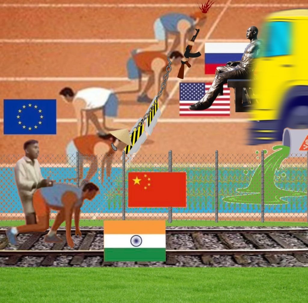 Post-Israel Latofuturist Rome Larping Brown America still takes the Pacific to cut China out of the West, so it goes East to be the powerbroker in Iran and the shattered remnant factions of post-Oil and Climate Change ravaged Africa no one's letting in and everyone's exploiting, as Russia occupies Belarus, the Baltics and Finland, while also connecting Russia's continguously to Kalinigrad and later taking Istanbul, rebuilds Christianity under Orthodoxy as Кoнcтaнтинoпoль, their warm tradeport with the Meditarranean, and after Europe decays without America Nuevo. Brazil is in a greater Portugese Reunification with Portugal and so enable Russia trade in the Atlantic instead of Gibraltr's block by Spain, but the alliances are tenuous.China in turn invades India to secure the greater Communist Republic new land, where once again a manifest destiny kills milions of Indians, who will later be called Native South Chinese on their plantations. 2200 China will feel really bad about it because of some merchants from New Dehli that are in a suspsicious cult involving stars and want war with America Nuevo