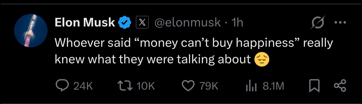 >>528002398Imagine being laid off, having to foreclose on your house and not being able to pay for your son’s cancer treatment and seeing that tweet by the richest and least charitable man on earth