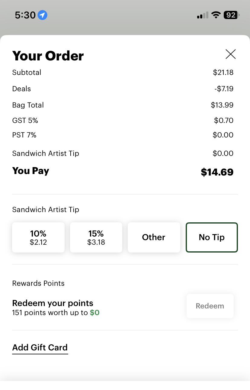 >>528001553i want to order a subway sandwich with the app for pickup, but i don't want to leave a tip. is this normal or not should I be tipping for pickup now?