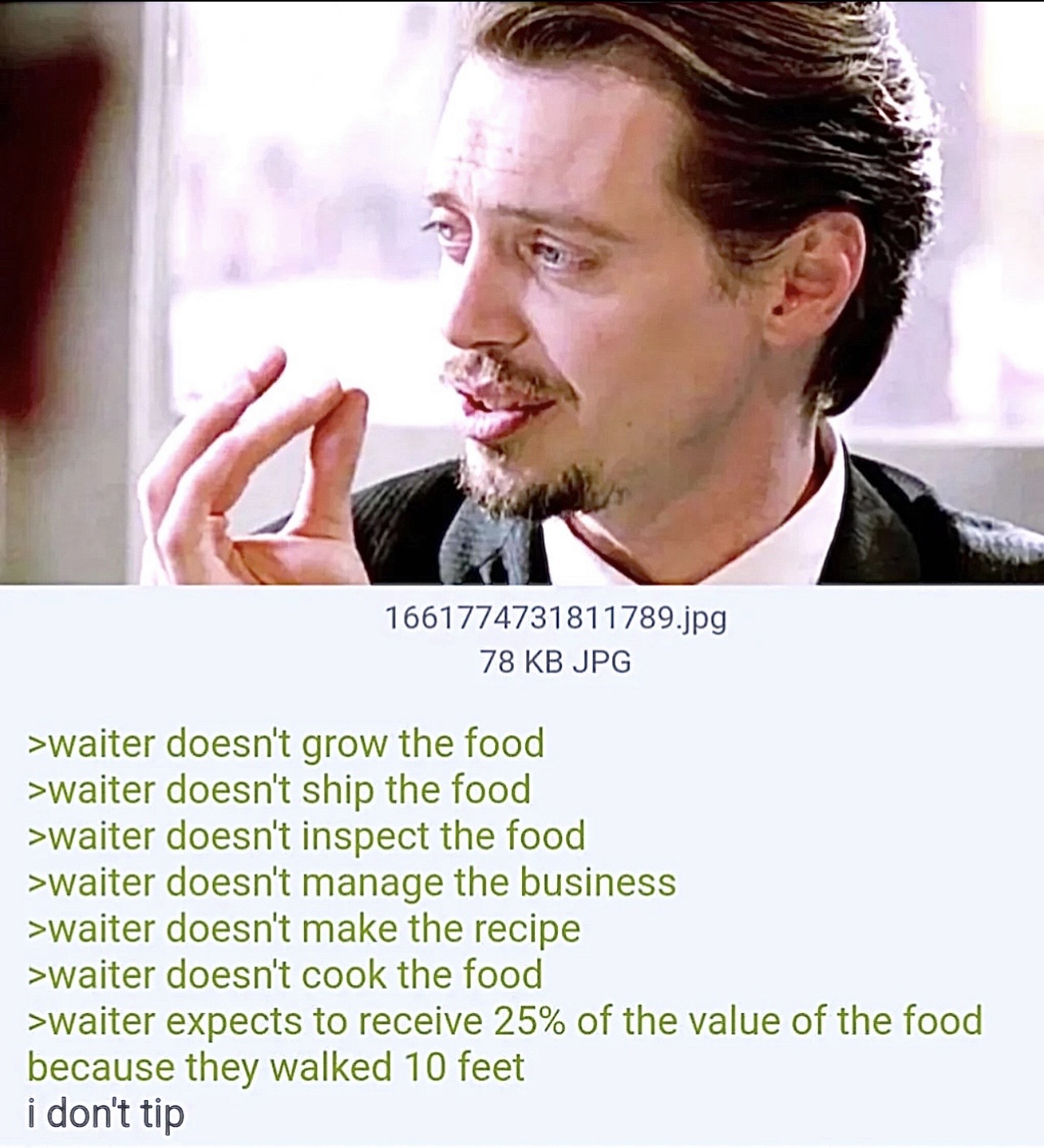 Because only kikes, niggers and teachers don't tip.