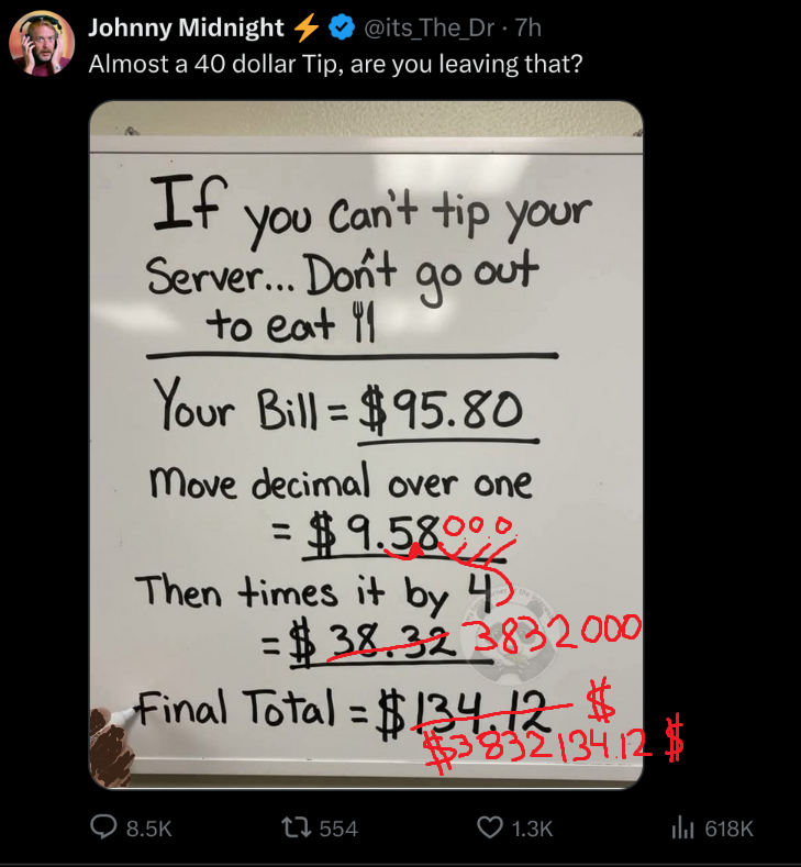 >>528001553If the server has to gall to ask for a 40% tip they're getting 0.