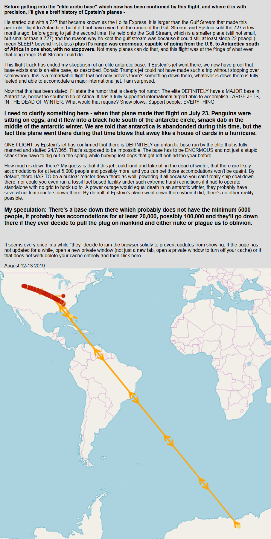 >>528005482>"there are flesh eating demons from parallulz dimensions hiding in the ice"Is bullshit.It's bullshit to keep you away from figuring out that Earth is flat, and that wall of antarctica is huge. And in order to stop you from sailing around it (or flying a drone) and figuring out that it takes waaaaaaaaaaaaaay too long .>there aren't some monsters>but there may be close to being the edge, >and electromagnetic / electrostatic planetary fields may be different>so you brain may not survive if you go deep inside.But all you need to sail around or send a drone / plane. And of course you'd be stopped from doing this.