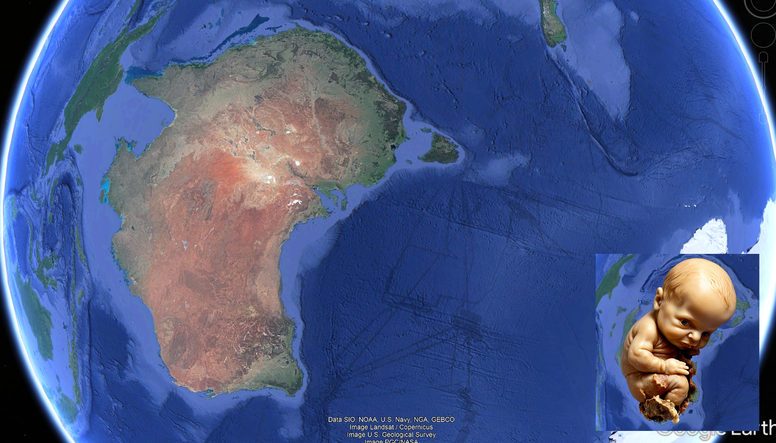 This is where Australia was birthed from, yes, it's a petrified baby. We are parasites mining/feeding off the dead biology.
