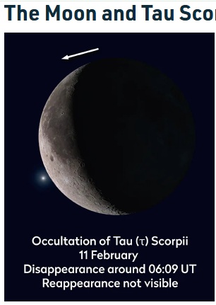 everything is talking about sunday or monday but do you realize there is actual happening on the sky in wednesday?the star Tau Scorpii will peek out from just on the lower left corner of the moonthis will be viewable from both USA and UKafter occultation there will be exactly 33%-lit waning crescent moon which hides the star from view.