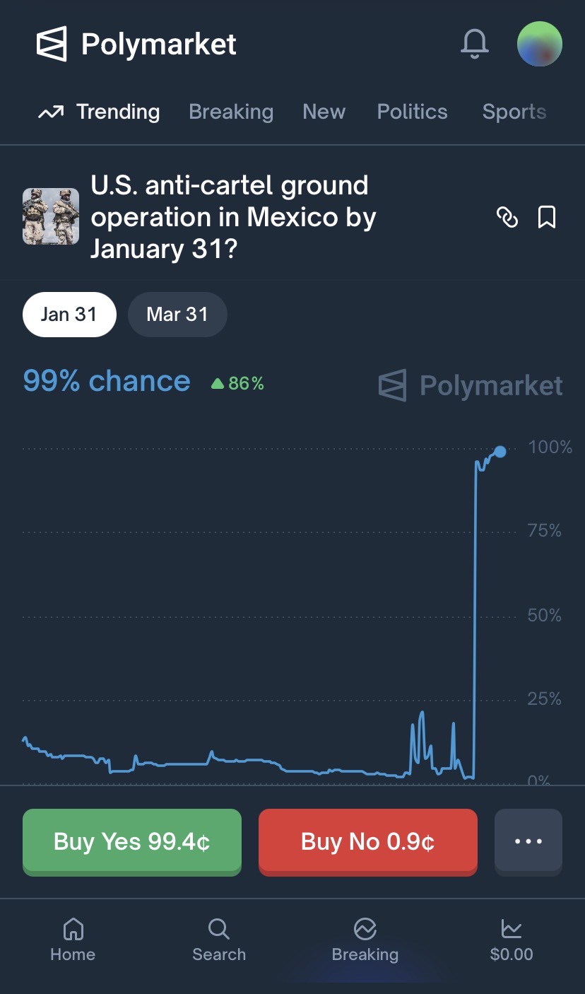 >>528013786Because you never know which markets will be defrauded. Look at last weeks fraud. Both government officially agreed that the U.S. wouldn’t conduct operations against the cartels within Mexico. That was the safe position. It was trending around 90% for days. No one could see this particular market being cheated by UMA whales. Large holders buy marginal amounts of long shot contracts and look for any kind of news story in their favor. They then use that news to push a dispute, and eventually a vote. The holders then vote in their favor. This system is unique to Polymarket. >>528013731Sure, but a lot of these markets are pretty small. Especially the ones that would be easily defrauded, like Trump mentioning Greenland at the State of the Union address.