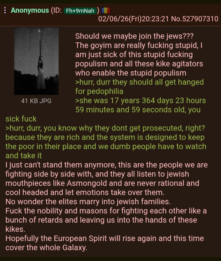 This?This is war, you fucking tranny jannies.You banned a good fuckong thread because it was fun and made the jews uncomfortable.It was a plotical thread and not off topic, but that should not matter.And let me tell you something to all the newfags/pol/, Politically Incorrect is not a politics board, it s a random board for politically incorect topics, this isn t the trump board, or political news board.If you comment on a thread that it s a slide thread because it doesn t discuss the latest news, which already occupy half the catalog, you are a retard.5 years ago you could discuss here anything, we had literature threads, political theory threads, threads talking about the outdoors, redpill newfags threads, music, sports, fitnessTHESE JANNIES KILLED EVEN THE HUMOR THREAD OFF!!!Then they made bant so they can ban any non boring thread, its literally in the name and now newretards think this is the same with new /new.Well jannies you better prepare yourselves for constant posts, which you deem irelevant but are essential for this new generation of anons. We ll have ofd topic threads, shitpost and spams.It doesnt matter what instruments you ll use trannies, I will circumvent them all.>One such tactic would aim at gradually making these boards less interesting for their users.