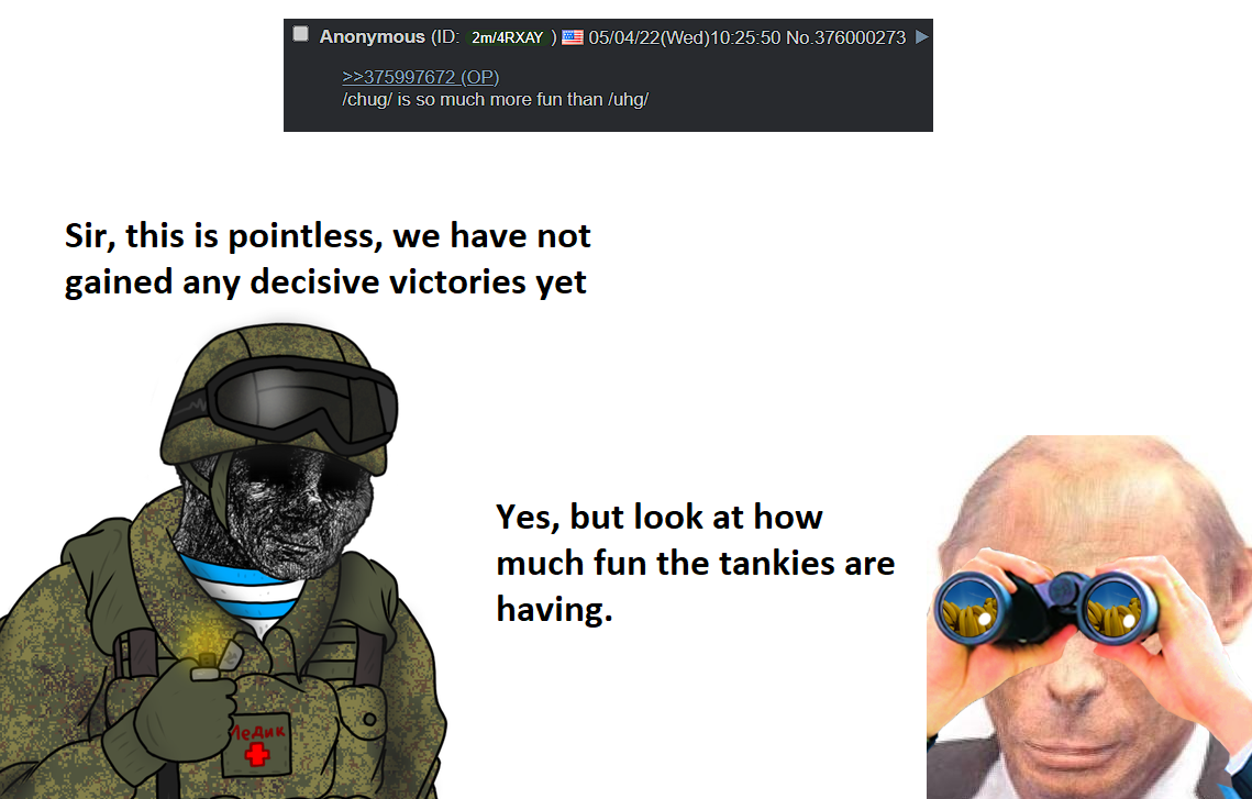expecting to see mass suicides of ukrospammers and wafflers in uhg. not a dick is given to your war effort.