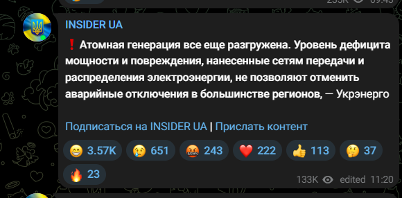 >>528023585yeah 95% have power after crews worked all night in -11°C following the 5th strike this week. congrats on not freezing to death... yet.80k still without heat. luch tpp cooling systems destroyed. running on backup generators.