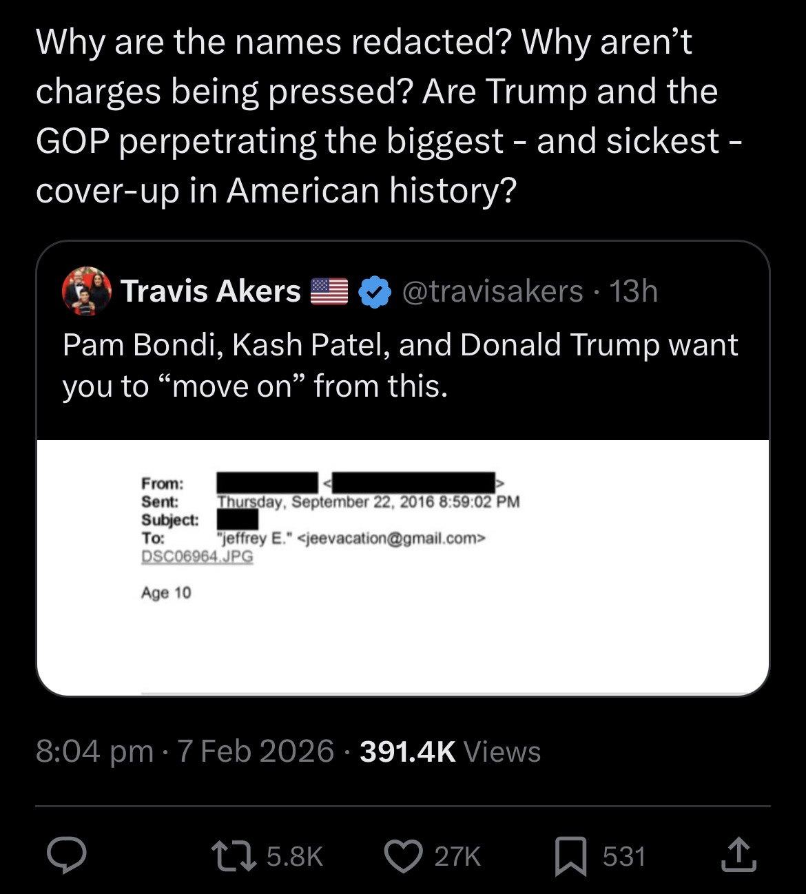 Trump, Kash Patel, Pam Bondi, Tulsi Gabbard, and the MAGA pedophile cult want you to “move on from Epstein.”