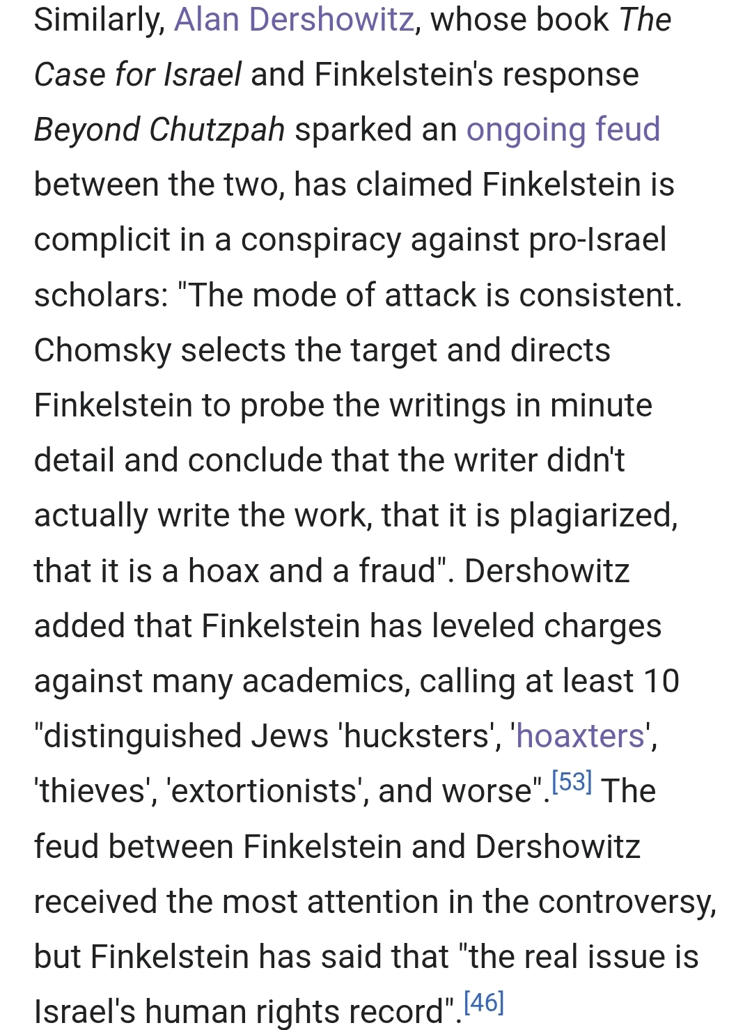 >>528017460Find 1 bad thing finklestein has done. He even hates Alan dershowitz and Alan worked hard to ruin normans career https://en.wikipedia.org/wiki/Dershowitz%E2%80%93Finkelstein_affair