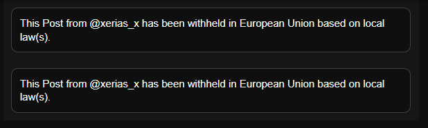 >>528020504>Here's the full version>https://x.com/xerias_x/status/1981716010483753013thanks frenI don't have X so it asks for a log inOn Nitter, I guess either the X user somehow is seen as being in the EU, or maybe nitter's servers? Has to use a third party site to download the video.I just wanted to enjoy a nation-state-level-racism...