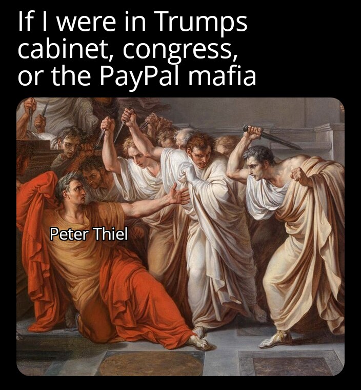 >>528018212Billionaires are sad because they have to pay more money to keep their keys loyal in order to not be sold out, and how they cannot walk though a random town that has normal people in it as the normal people want them dead or to be paid off like the keys especially now there are cheap easy drones that could utilize posions to give them slow painful deaths. (Where thier likeness will be mocked afterwards)