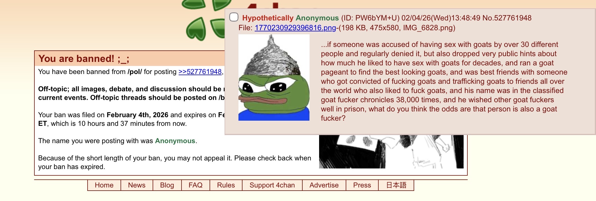 >>528023705There are no less than 22 Epstein threads up right nowThat is a RIDICULOUS level of spam posting as it is. Nobody needed your dumb faggot ass take added to the shill choir kek