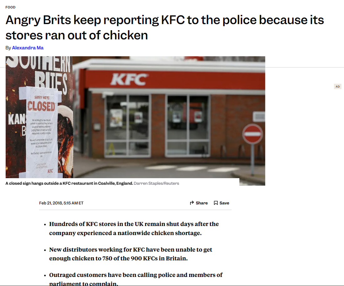 The funny thing about KFC is that it's basically just British food that British settlers brought to America (except for the cole slaw which came from Dutch settlers)