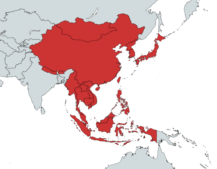 Only the countries labelled red are what I consider Asian. Not everyone from the continent of Asia is technically considered "Asian". Georgia is in Asia geographically, but Georgians are white, not Asian.