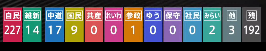 >>528029500For you people who cant read, 192 seats left open, 227 for LDP.