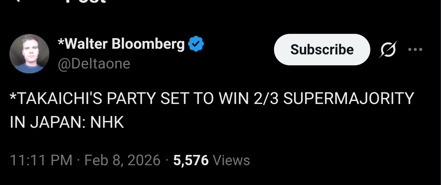 For the people and even Japanese media citing the 1.2+ million foreigners, this is literally just a restructuring of existing foreigners, to put an actual cap on which there were none before. https://www.youtube.com/watch?v=-ybhFaOhM9A&t=184sLiterally the most straight up false information I hear spread everywhere. I'm thinking this is a psyop against Takaichi. Remember, this is the same Japanese media that were caught admitting that they will "lower her approval ratings" when they are LEGALLY required by law to be neutral.Anyway, what does this ultimately mean? NOTHING. All Takaichi has done has laid the groundwork for what is to actually to come. Which we have yet to know. It is, in every sense of the word, a nothingburger AT THIS MOMENT. Whether good or bad, nobody actually knows yet. One thing's for sure, she will either be the most zogged leader or the most based one. She essentially has free reign now. Expect interesting times for Japan. If Takaichi is no good then it's over.