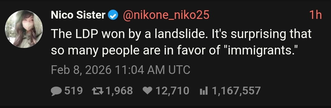 Most liberal and Pro-immigration party of Japan is considered far right now Sanae is another controlled opposition like Trump