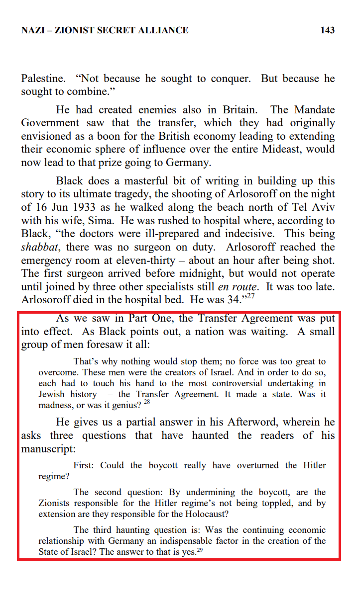 >>528032751>Hitler allows most powerful Jews to leave Germany for Palestine in the Haavara Agreement>Rothschild the leading figure for Israeli state, seen in the Balfour Declaration>Fight a war and engage in propaganda so that public opinion demands a Jewish stateMakes sense