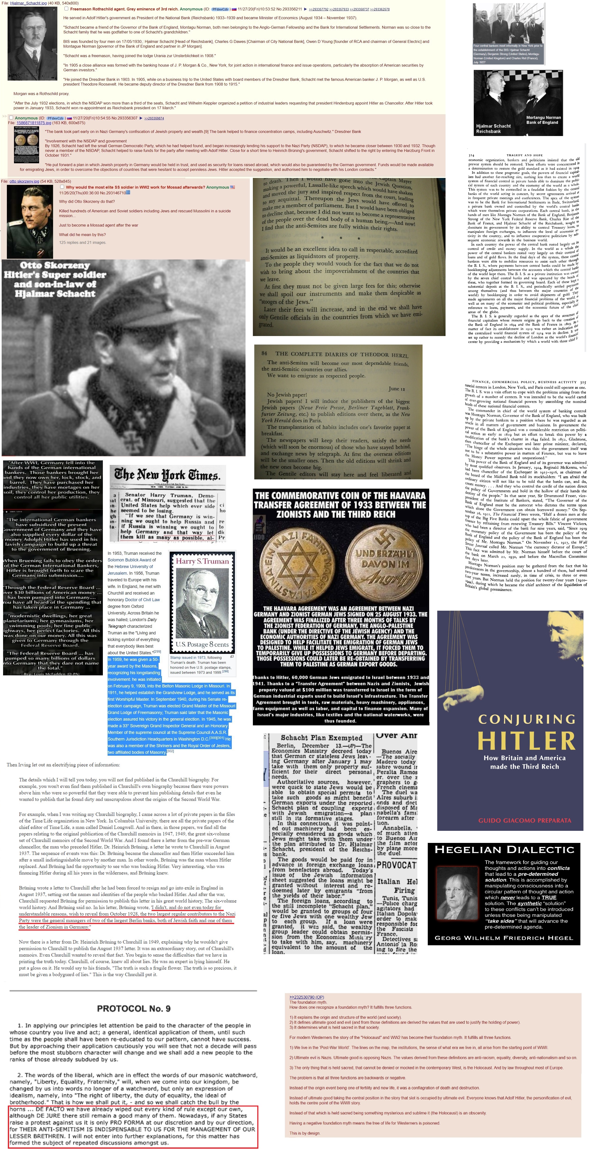 Everybody with a high IQ knew this decades ago. Trying to pill people on it, though, is futile. One side needs the Hitler Nazi boogeyman as a shield, so they will LARP as and deny. The other side needs Hitler as a hero as a cope for their own murderous ends. Simple fact is, he doesn't get all that money unless they gave it to him. They don't get Israel without him.