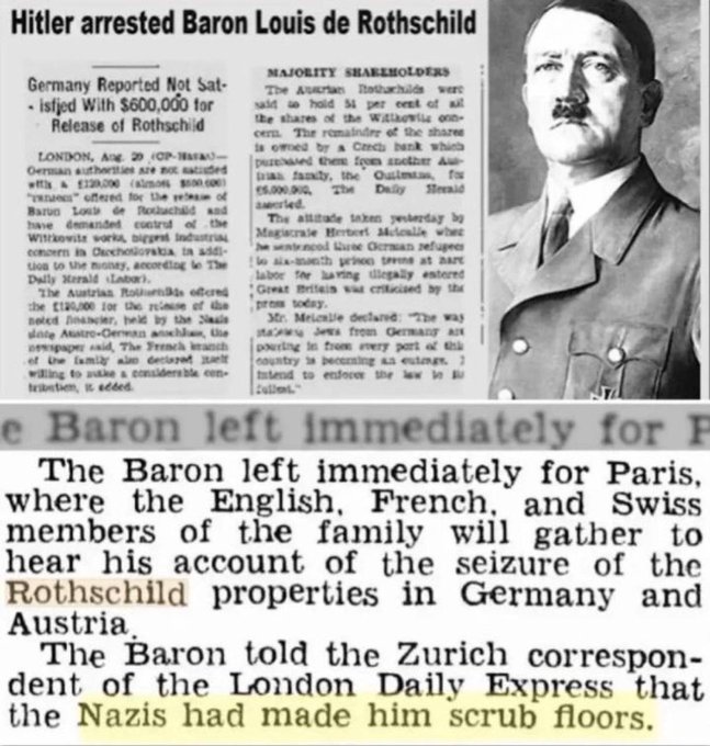 >>528033557nazis arrested 4 rothshcilds but killed only catholic wife of one of them so he could reposses her family wealthhitler worked for rothschilds>>528035673pic rel