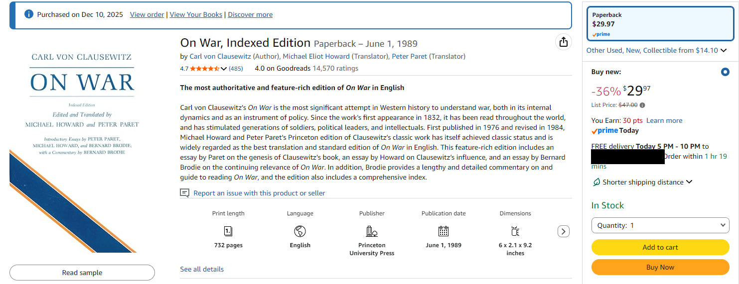 >>528044624>>528044867Thanks for the recommendation, anon. In any case, from what little I know of the book, it does seem to cover rather basic topics, nothing revolutionary seems to have been formulated.I'm therefore skeptical, especially considering his almost nonexistent role during the Napoleonic Wars and his presence in the battlefield at the Auerstedt debacle in 1806.Furthermore, most of the Prussian reforms resulting from that war were copied from the Grande Armée and therefore didn't originate with Clausewitz, I suppose.It might be contextualizing for people unfamiliar with certain aspects of war, but his book seems primarily to be a synthesis of basic conventions that pretty much everyone was already familiar with. Perhaps it's often cited because its content is rather vague, and therefore more eventual regarding multiple contexts.